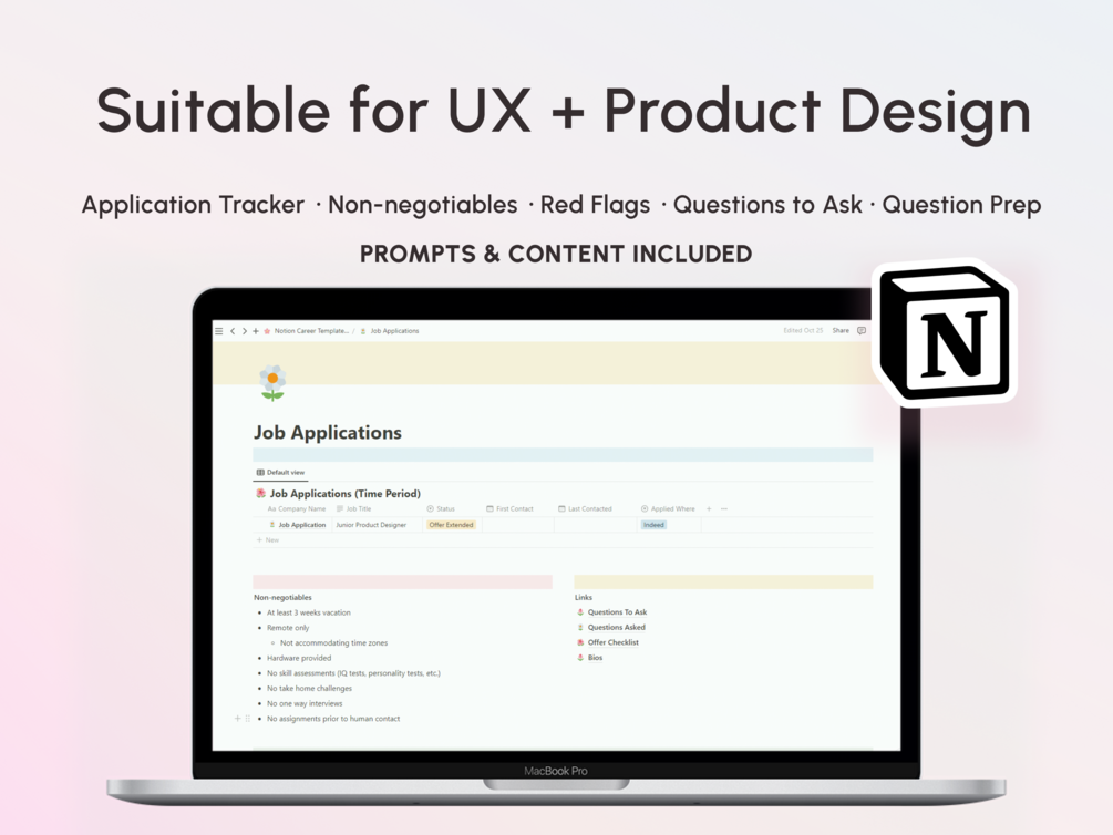 UX Design Job Application Tracker for Notion